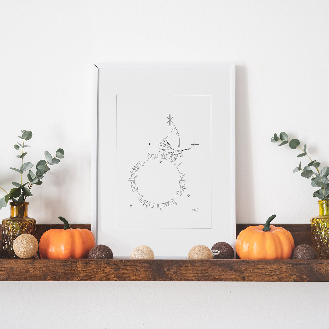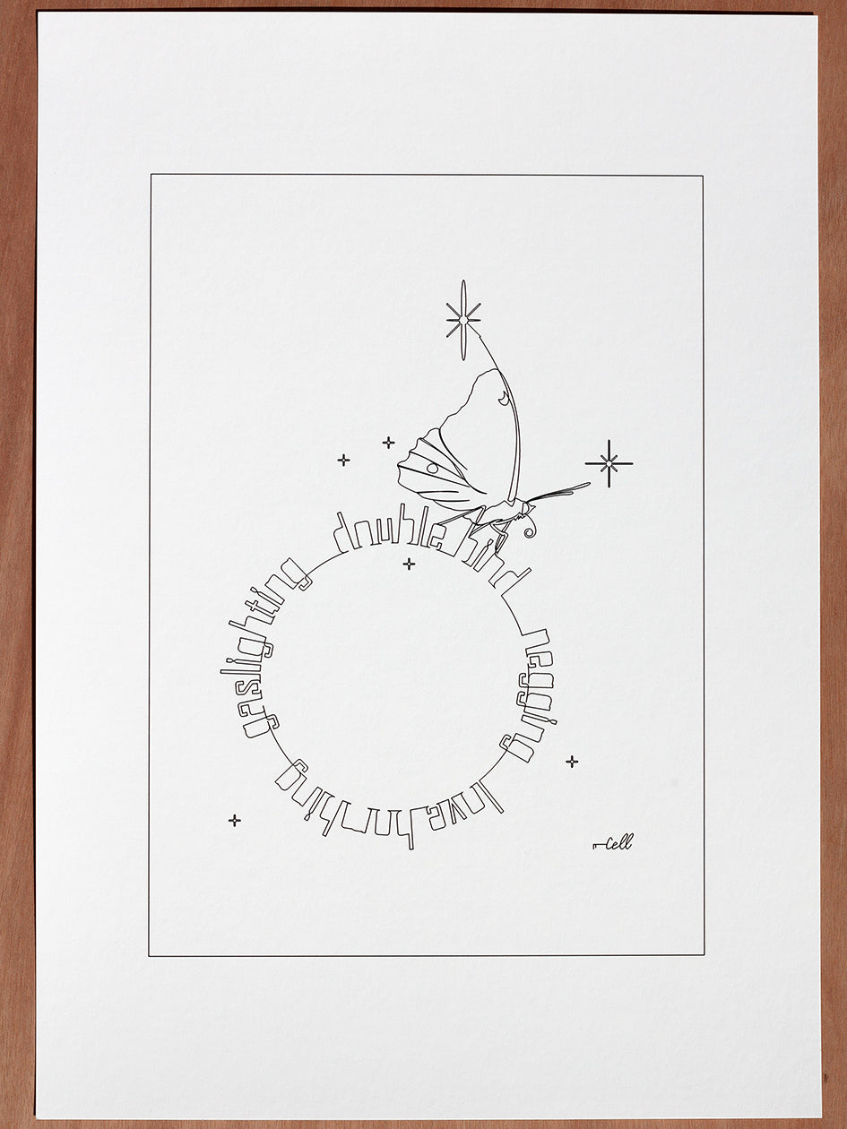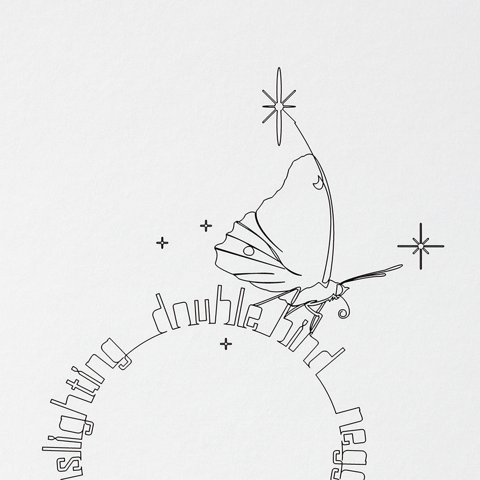 Figurant un papillon au cours d'un voyage stellaire, posé sur un astéroïde typographique: "double bind - negging - love bombing - gaslighting", "Antivirus" est une ode à celles et ceux qui transforment l’ombre en chemin lumineux, toujours prêts à s’élancer vers de nouvelles constellations. Photos non-contractuelles.